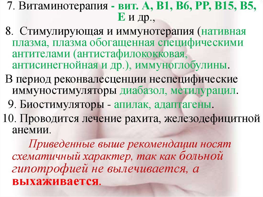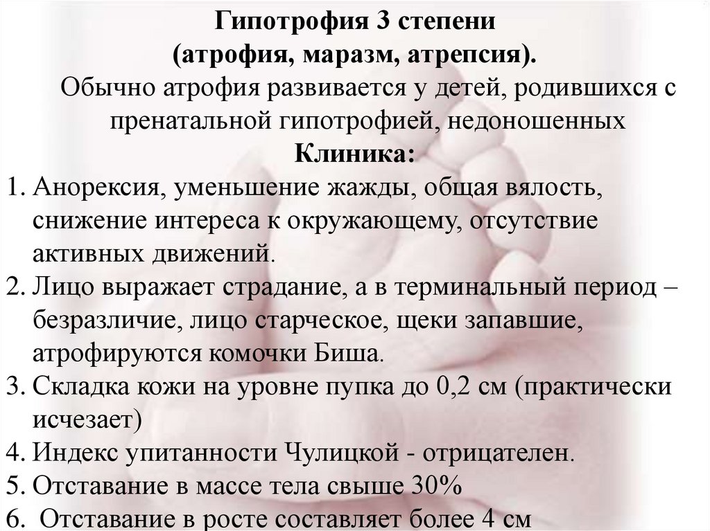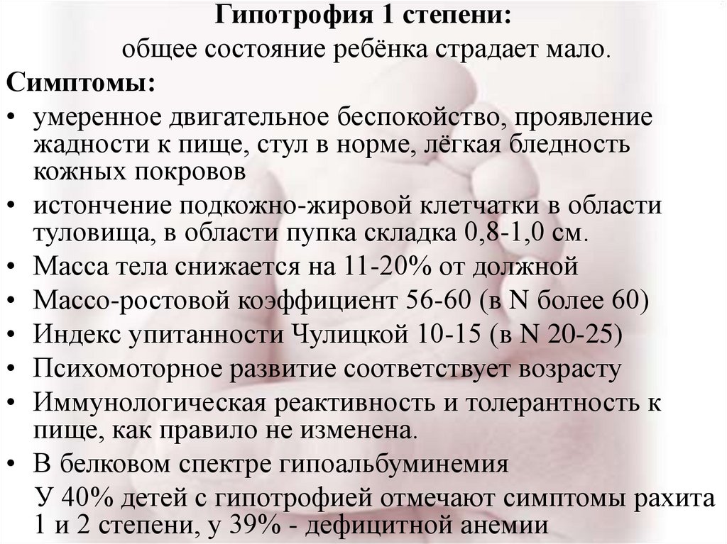 Дети первых двух лет жизни I. Дистрофия типа гипотрофии - отставание