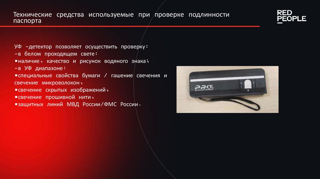 странице(проверяется в УФ диапазоне).