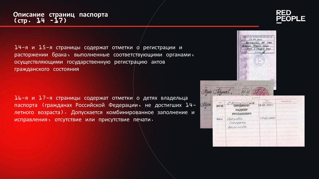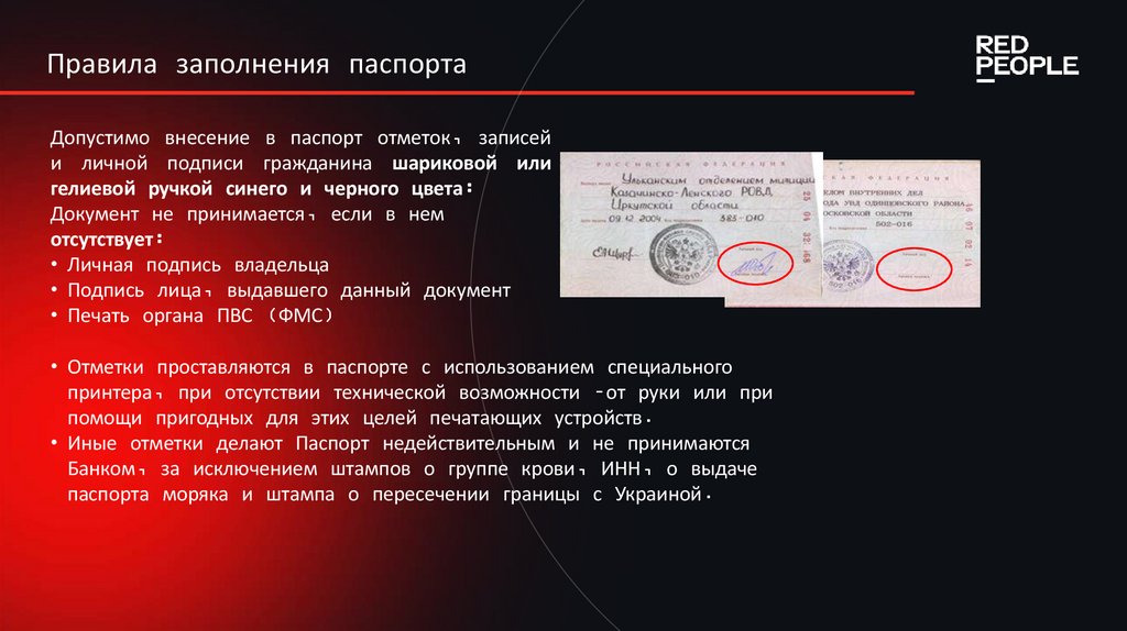 Правила заполнения паспортаДопустимо внесение в паспорт отметок, записей