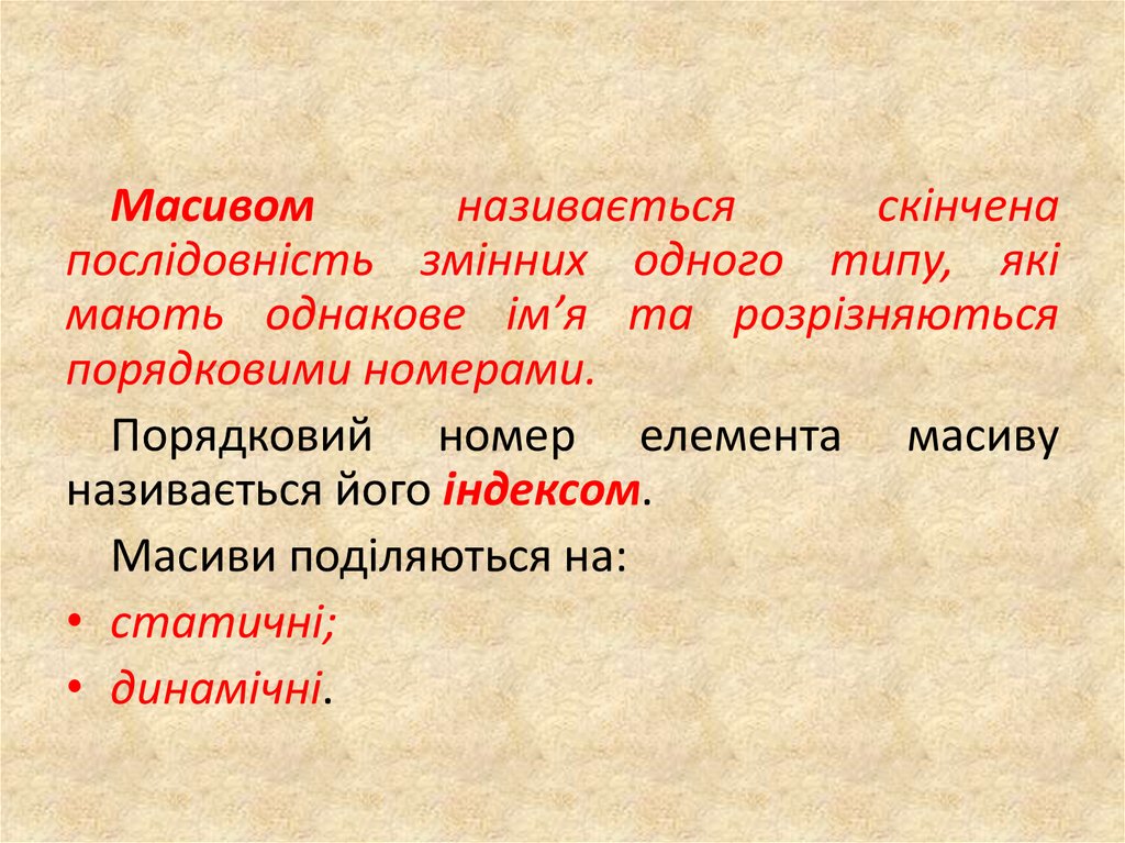 Масиви поділяються на: