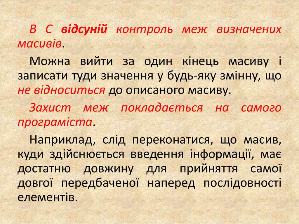В С відсуній контроль меж визначенихмасивів.