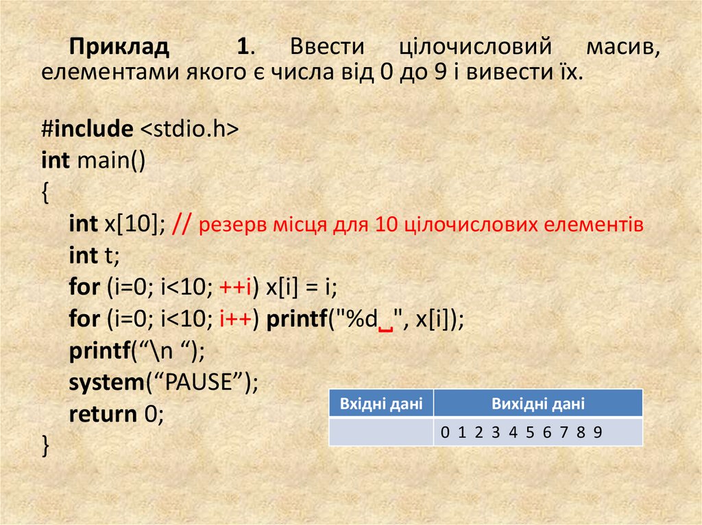 Приклад1. Ввести цілочисловий масив,