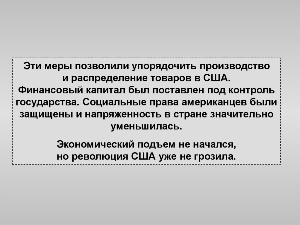Эти меры позволили упорядочить производствои распределение товаров в США.