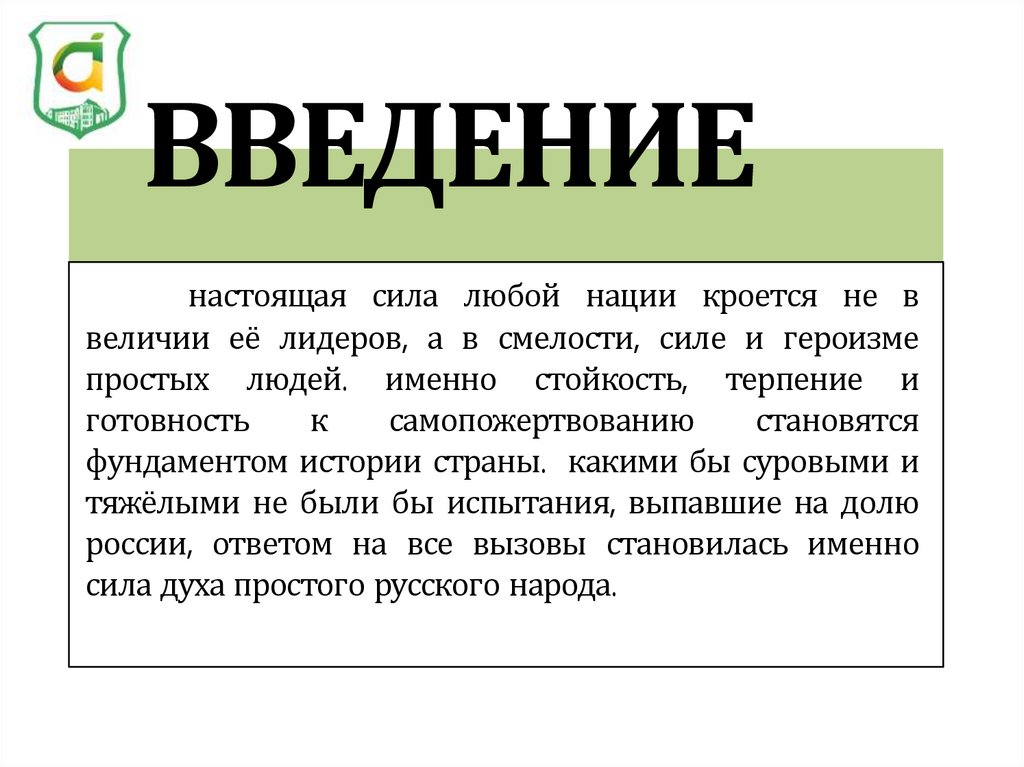 ВВЕДЕНИЕнастоящая сила любой нации кроется не в