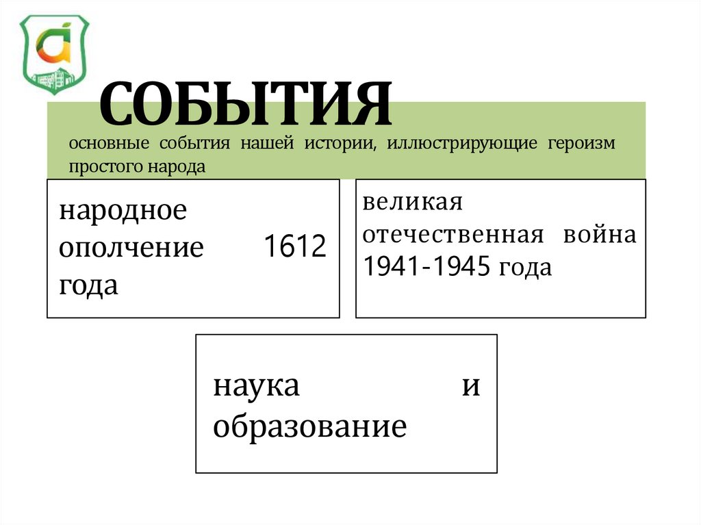 СОБЫТИЯосновные события нашей истории, иллюстрирующие героизм