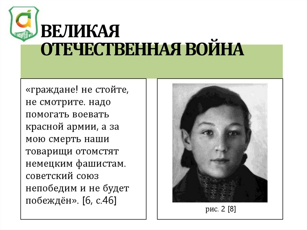3) Ковердюк, Н. В. "Угрозы ваши мне не страх внушают, а большую отвагу": проявление традиций патриотизма и