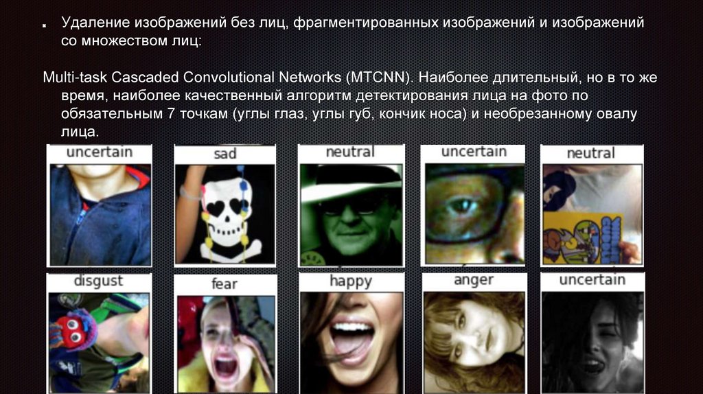 Удаление изображений без лиц, фрагментированных изображений и изображенийсо множеством лиц:
