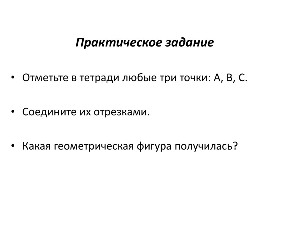 Практическое задание• Отметьте в тетради любые три точки: А, В, С.