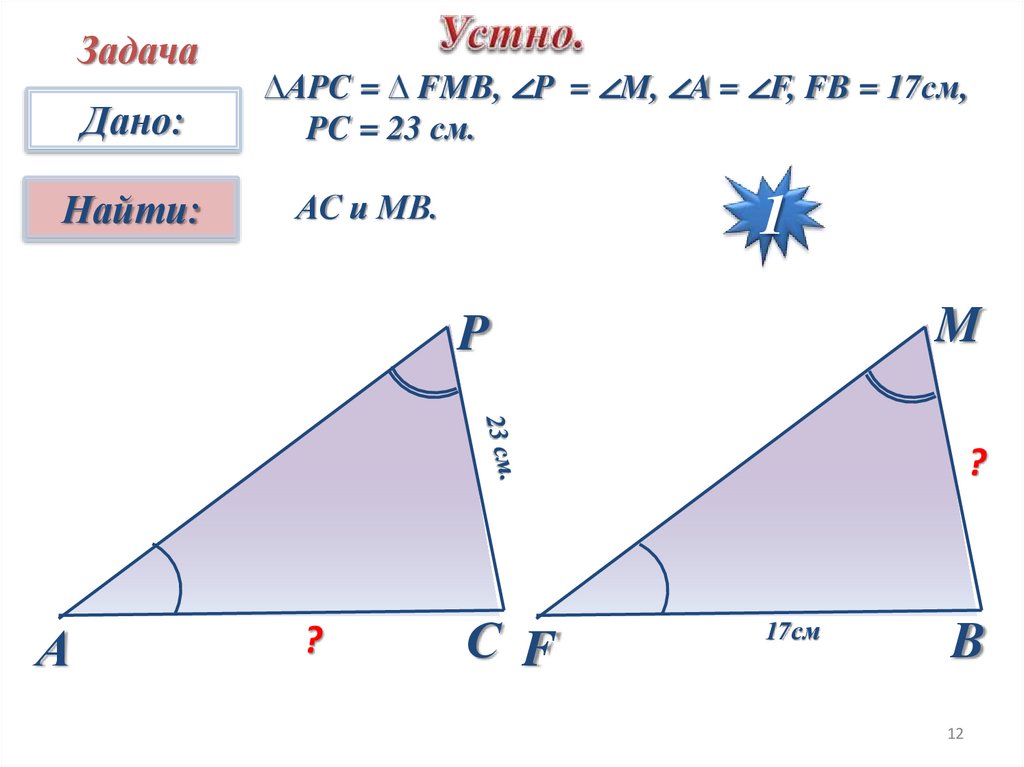∆АPC = ∆ FMB, ∠P = ∠M, ∠A = ∠F, FB = 17см,