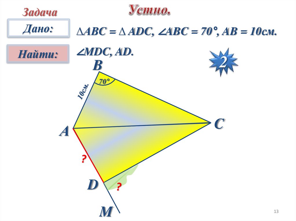 ∆АВC = ∆ ADC, ∠ABC = 70°, AB = 10см.