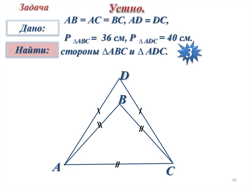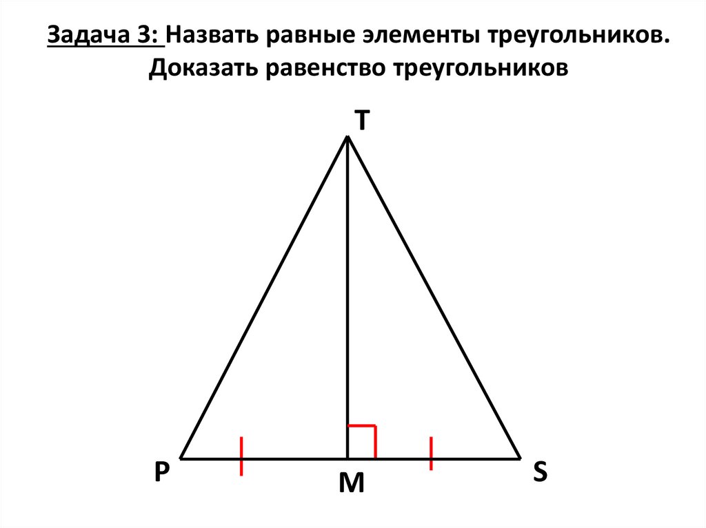 Задача 3: Назвать равные элементы треугольников.Доказать равенство треугольников