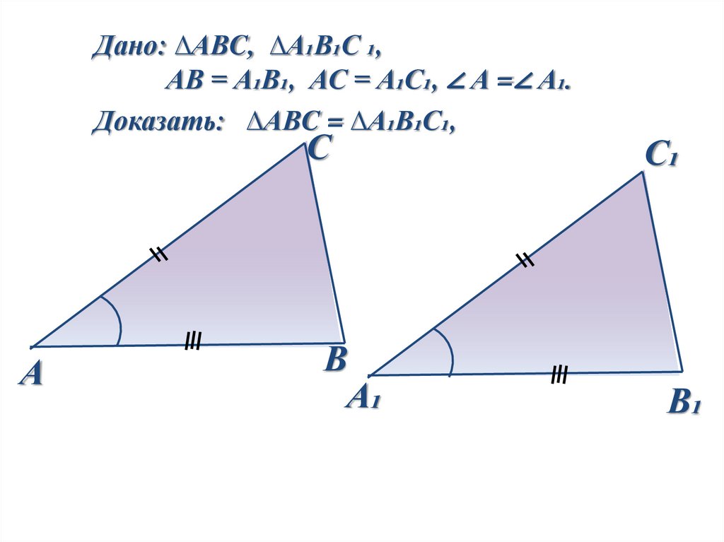 Дано: ∆АВC, ∆А₁В₁С ₁,АВ = А₁В₁, АС = А₁С₁, ∠ А =∠ А₁.
