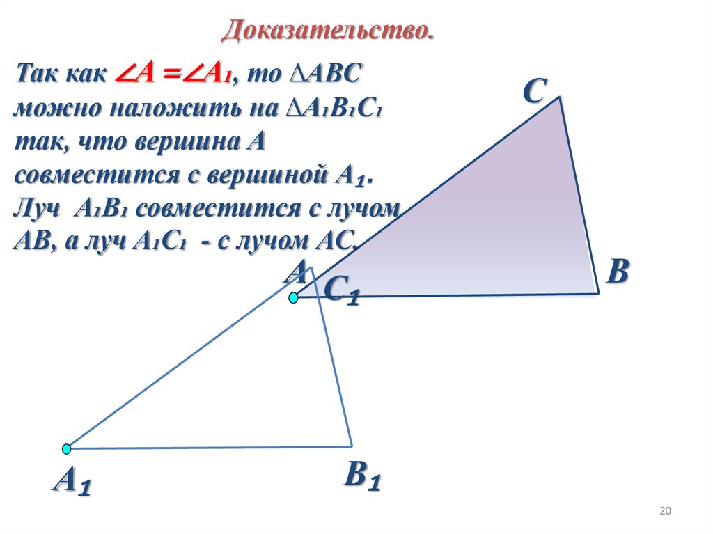Доказательство.Так как ∠А =∠А₁, то ∆АВC
