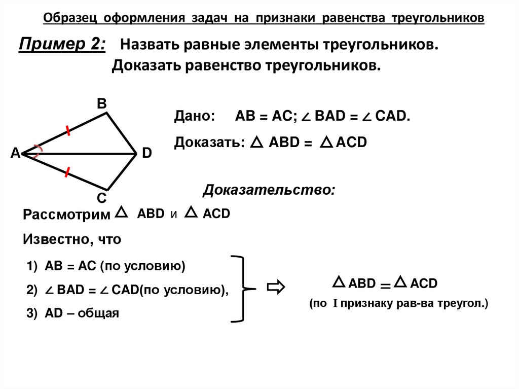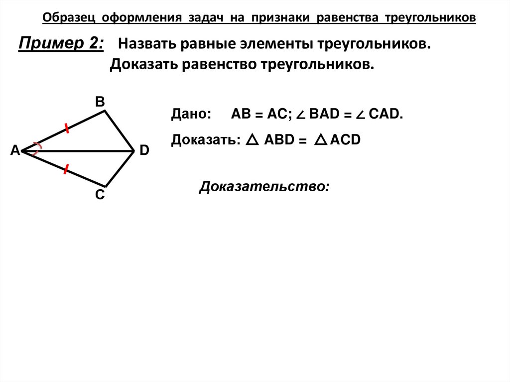 29. Задача 2: Назвать равные элементы треугольников. Доказать равенство треугольников