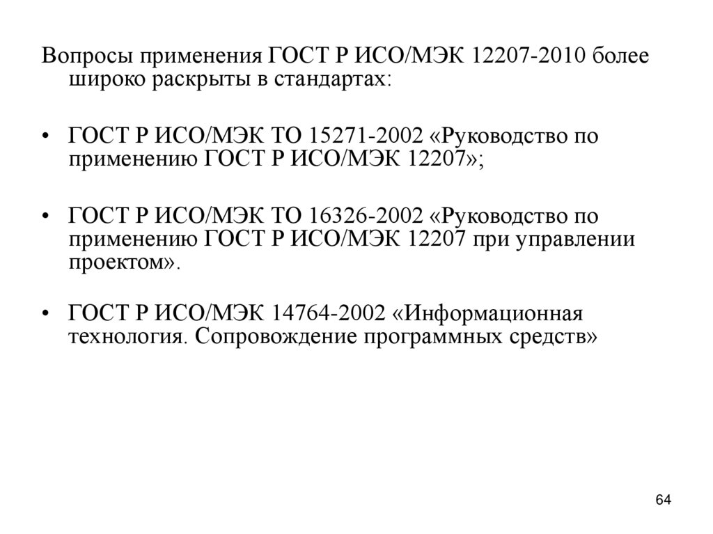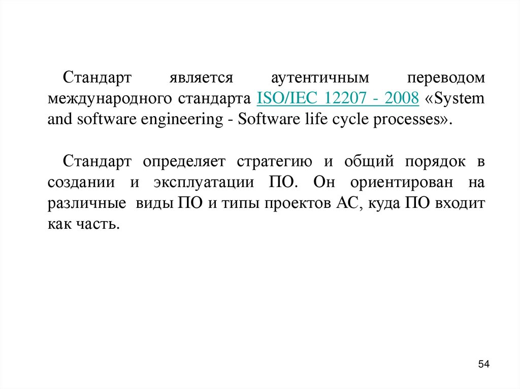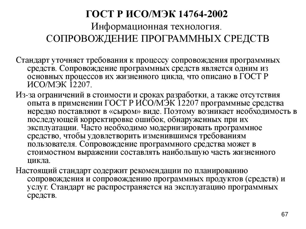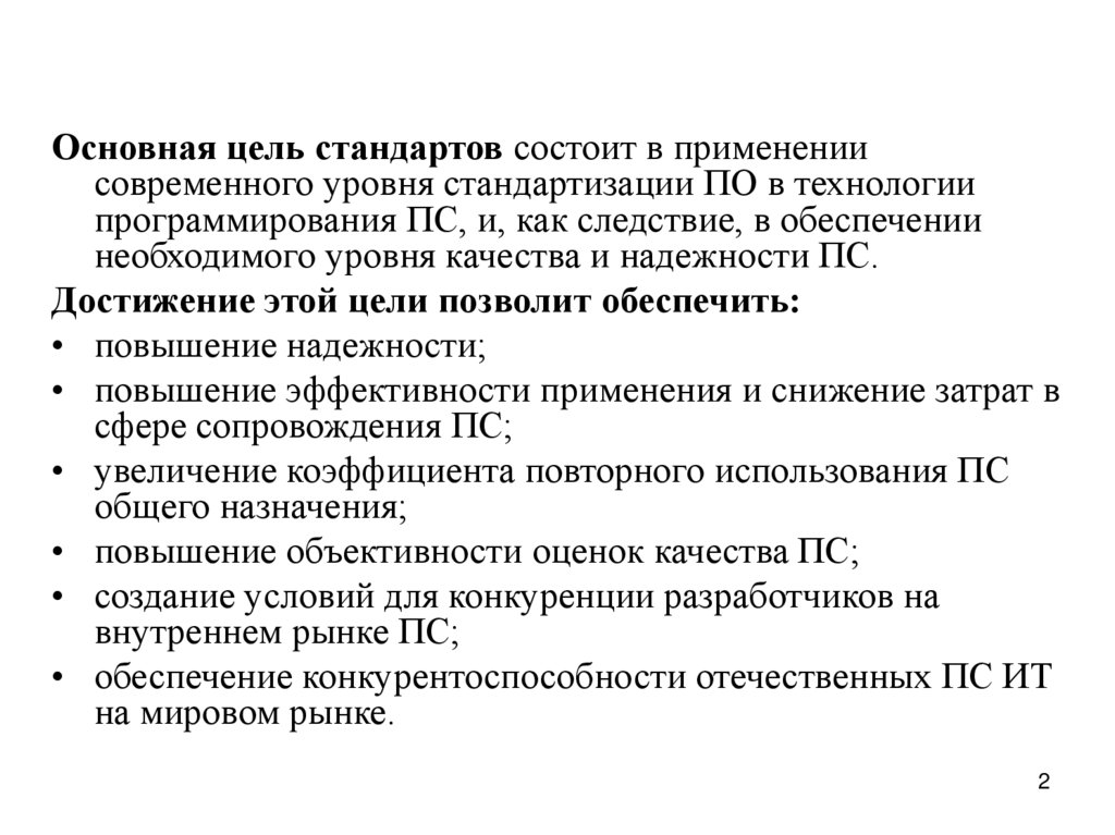 Основная цель стандартов состоит в применениисовременного уровня стандартизации ПО в технологии