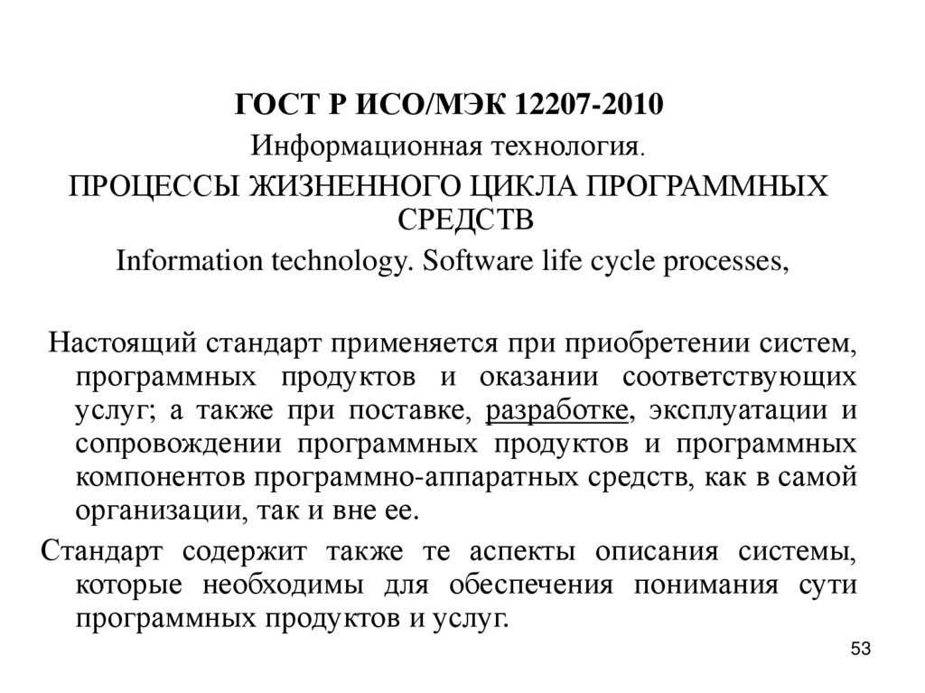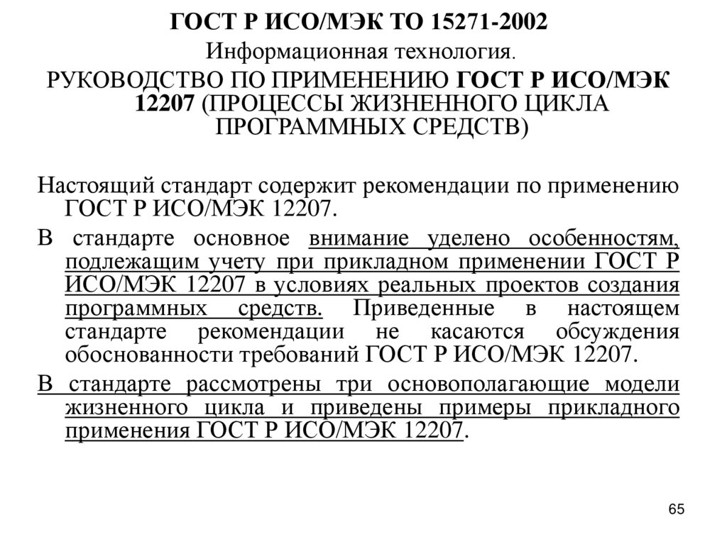 стандарты на ЖЦ, т. е. на организацию разработки ПО, как
