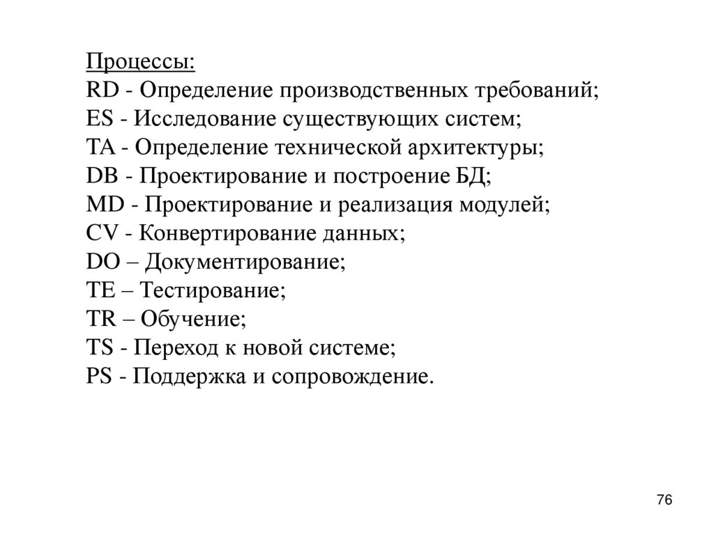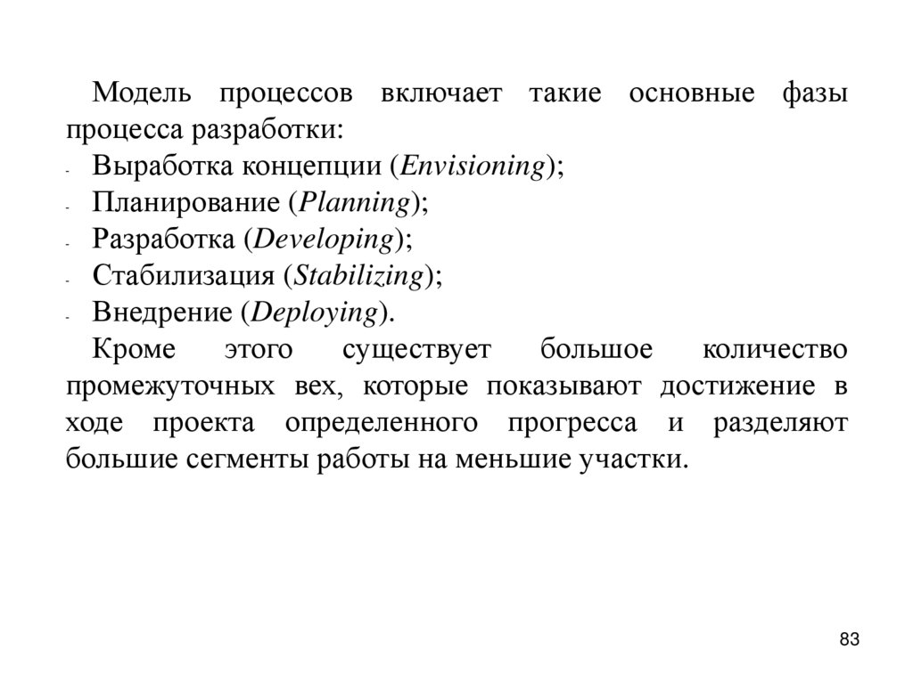Модель процессов включает такие основные фазыпроцесса разработки: