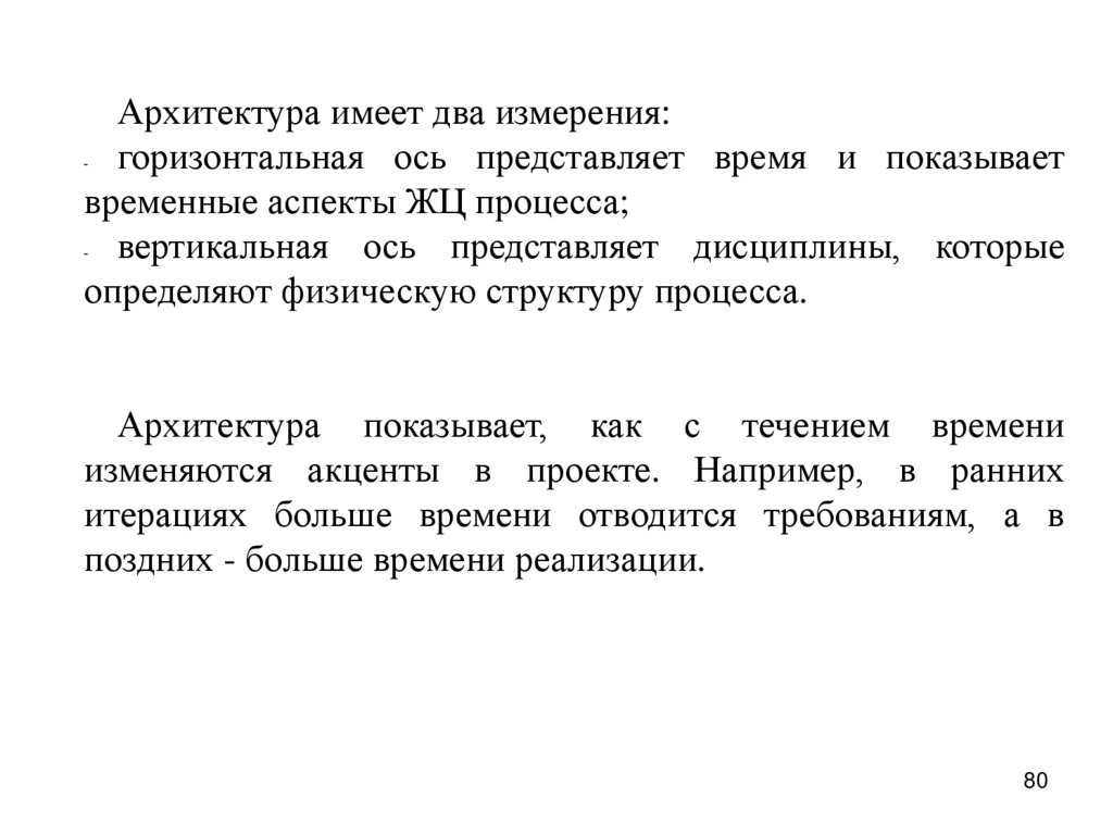 Архитектура имеет два измерения:горизонтальная ось представляет время и показывает