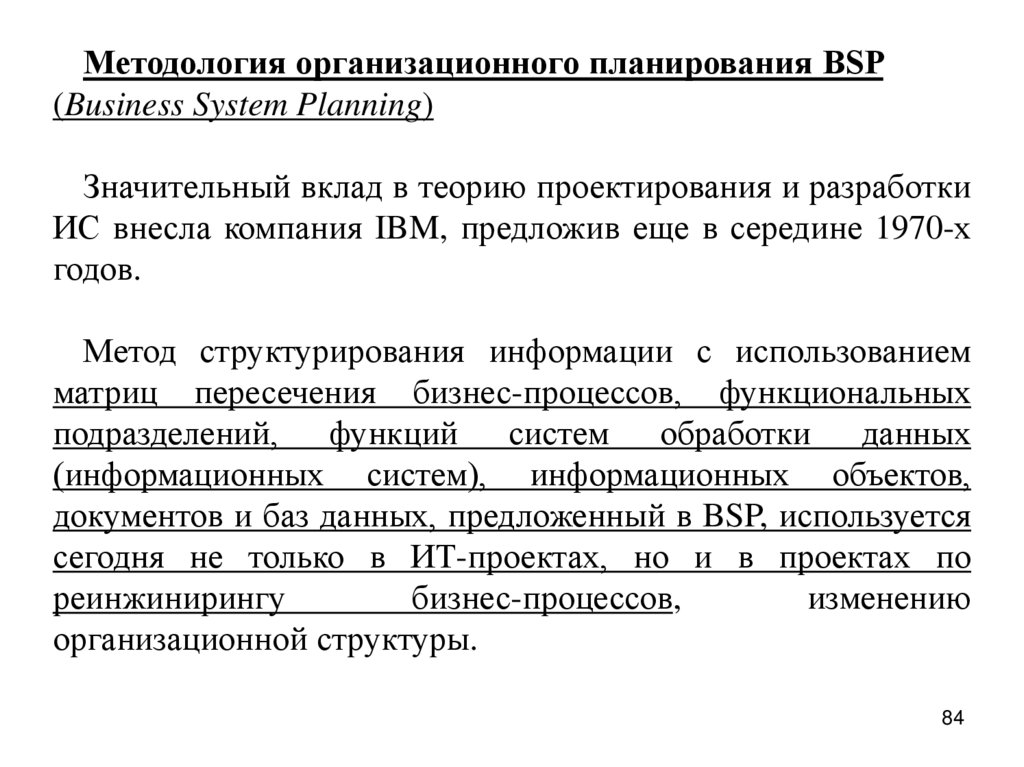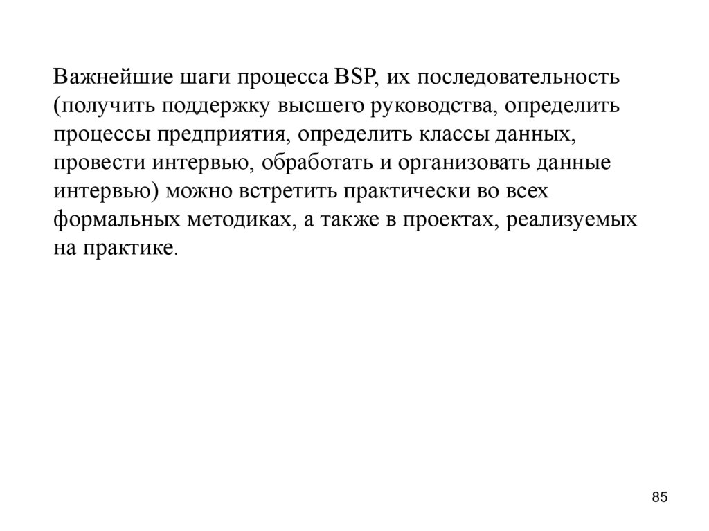 Важнейшие шаги процесса BSP, их последовательность(получить поддержку высшего руководства, определить