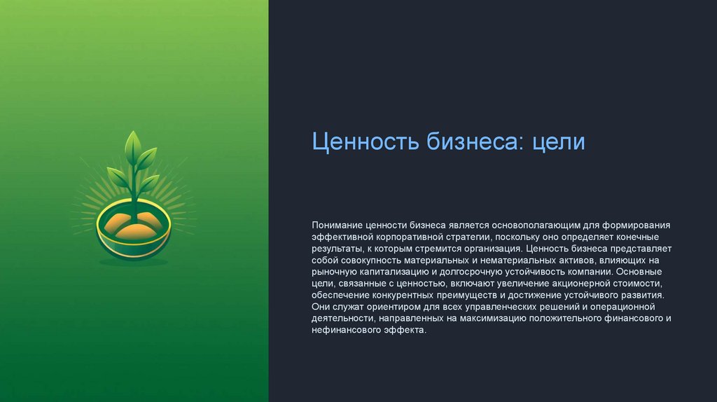 Ценность бизнеса: целиПонимание ценности бизнеса является основополагающим для формирования