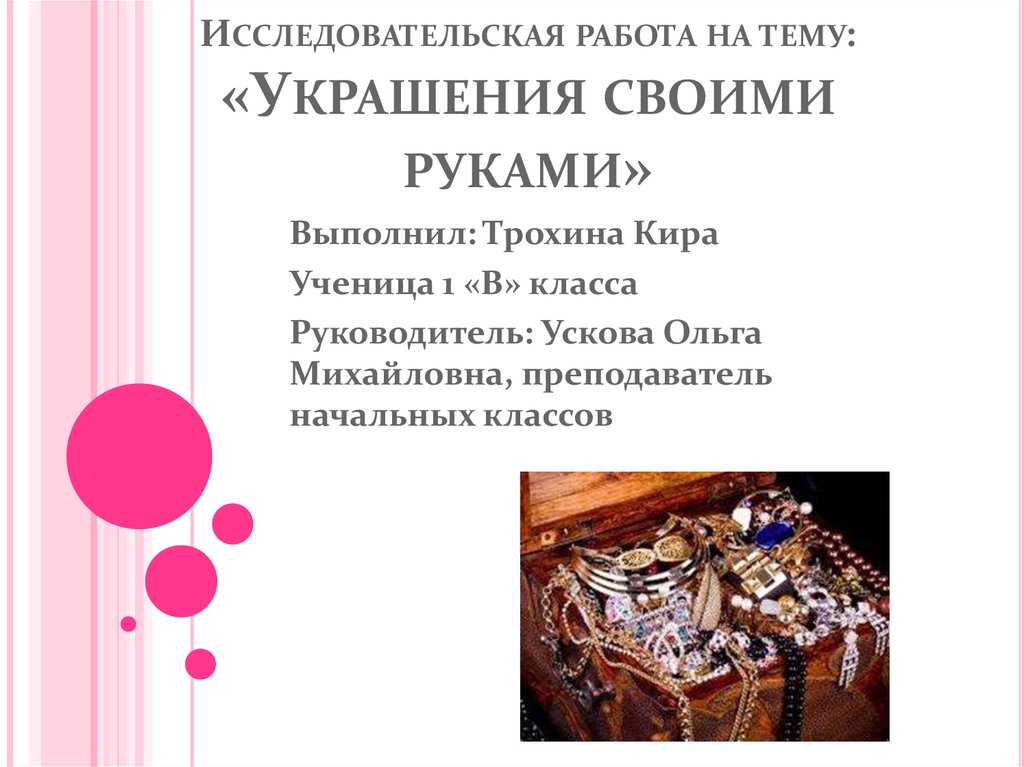 1. ИССЛЕДОВАТЕЛЬСКАЯ РАБОТА НА ТЕМУ: «УКРАШЕНИЯ СВОИМИ РУКАМИ»