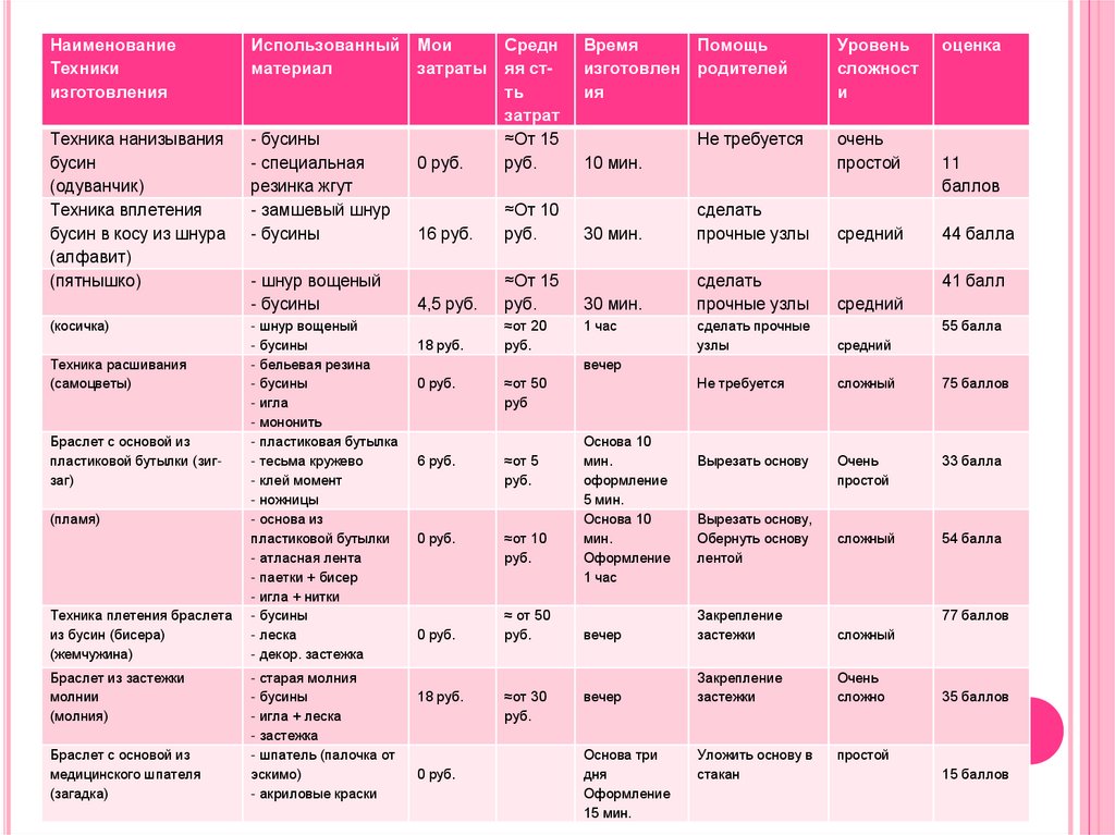 11. ТЕХНИКА ВПЛЕТЕНИЯ БУСИН В ШНУР БРАСЛЕТ «АЛФАВИТ», «ПЯТНЫШКО», «КОСИЧКА»
