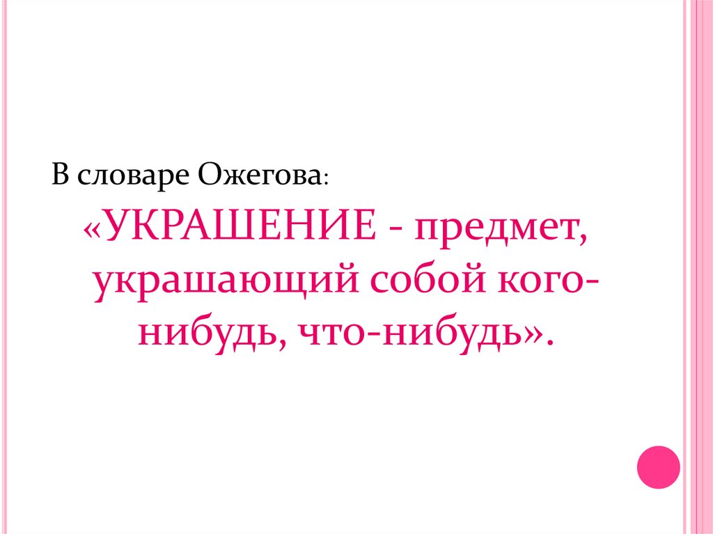 В словаре Ожегова:«УКРАШЕНИЕ - предмет,