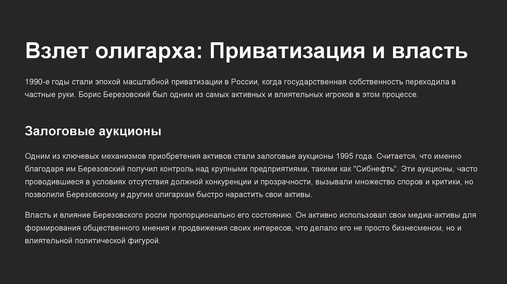 позволили Березовскому и другим олигархам быстро нарастить свои активы.