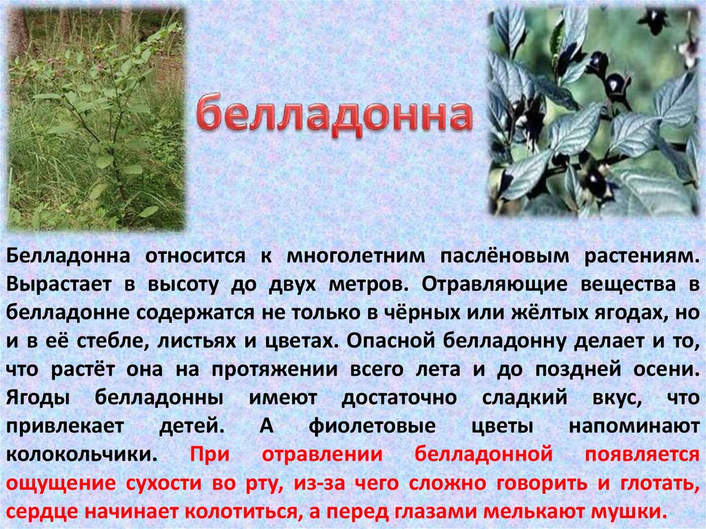 и в её стебле, листьях и цветах. Опасной белладонну делает и то,