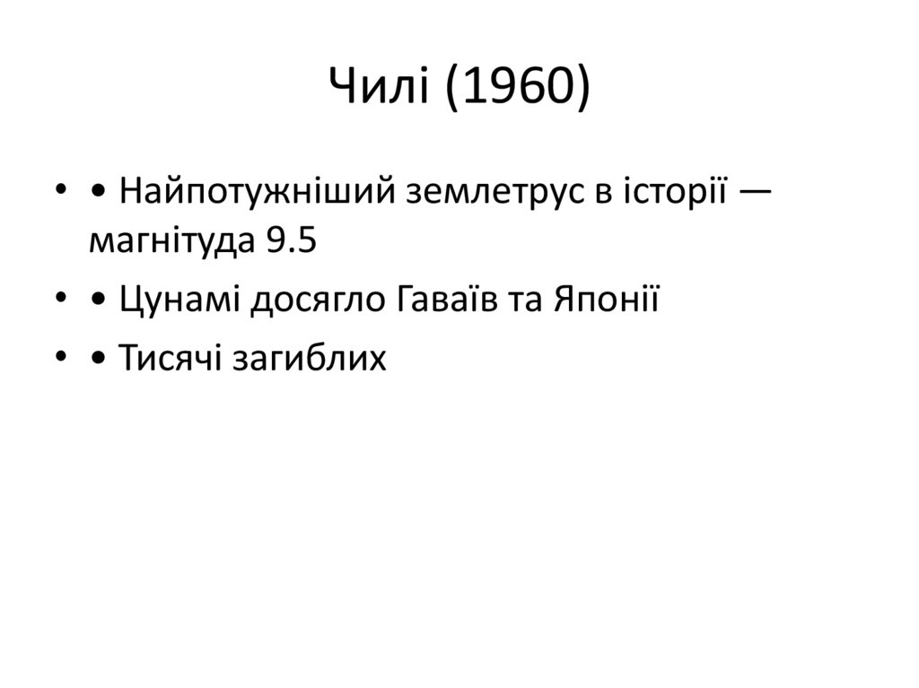 Чилі (1960)• • Найпотужніший землетрус в історії —