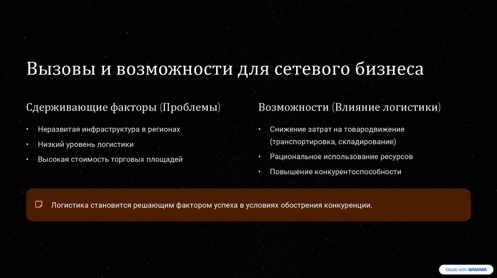 Вызовы и возможности для сетевого бизнесаСдерживающие факторы (Проблемы)