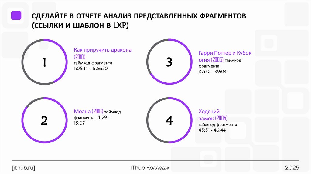 СДЕЛАЙТЕ В ОТЧЕТЕ АНАЛИЗ ПРЕДСТАВЛЕННЫХ ФРАГМЕНТОВ(ССЫЛКИ И ШАБЛОН В LXP)