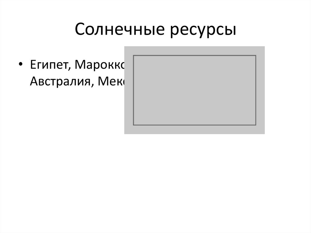 Солнечные ресурсы• Египет, Марокко, Саудовская Аравия,