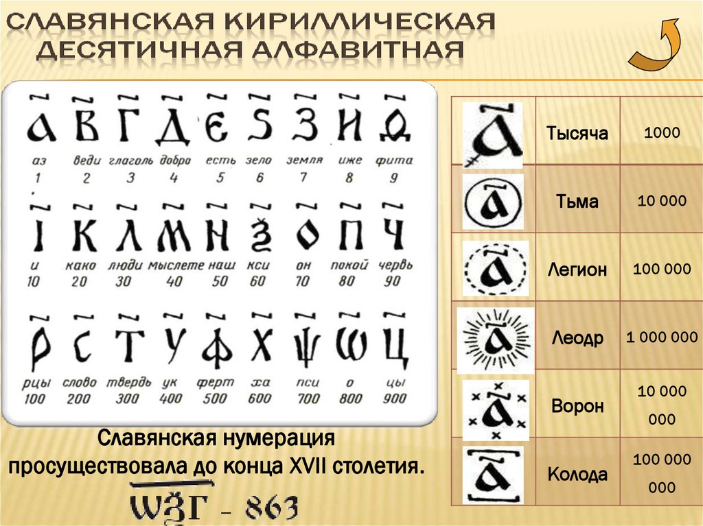 Эта система была создана для обозначениячисел в священных книгах западных славян.