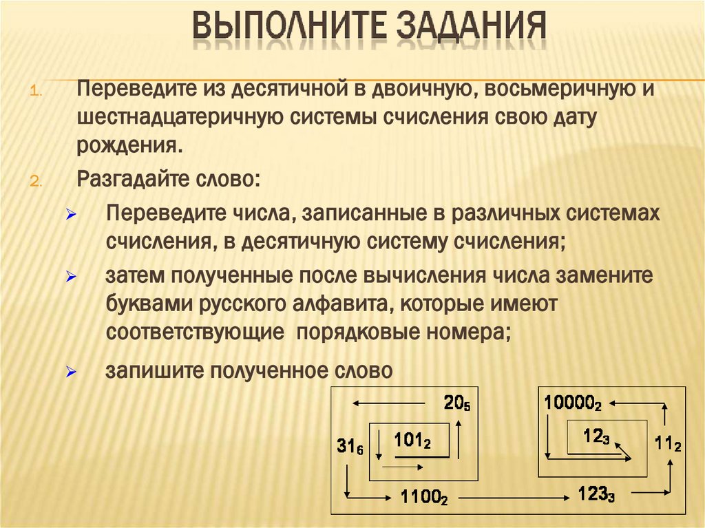 Алфавит десят ичной, двоичной, восьмеричнойи шест надцат еричной сист ем счисления