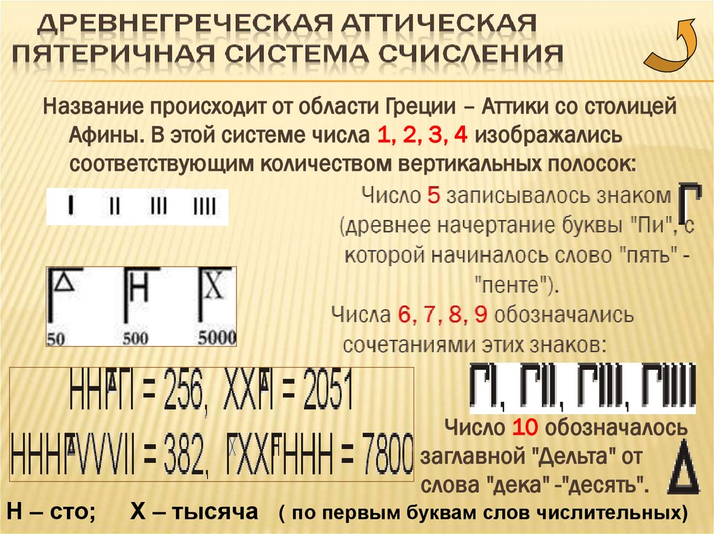 Название происходит от области Греции – Аттики со столицейАфины. В этой системе числа 1, 2, 3, 4 изображались