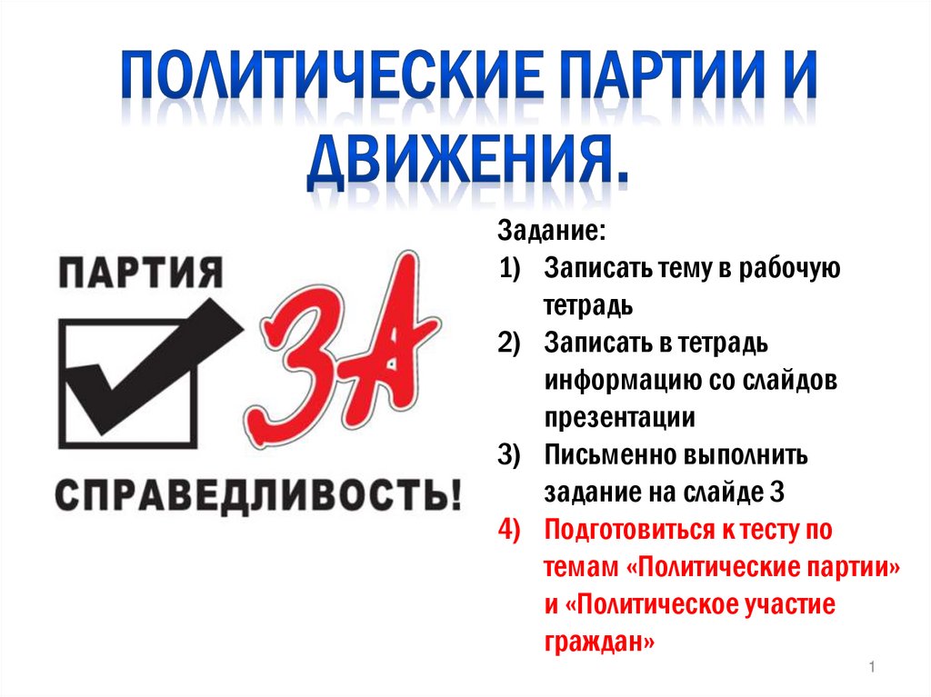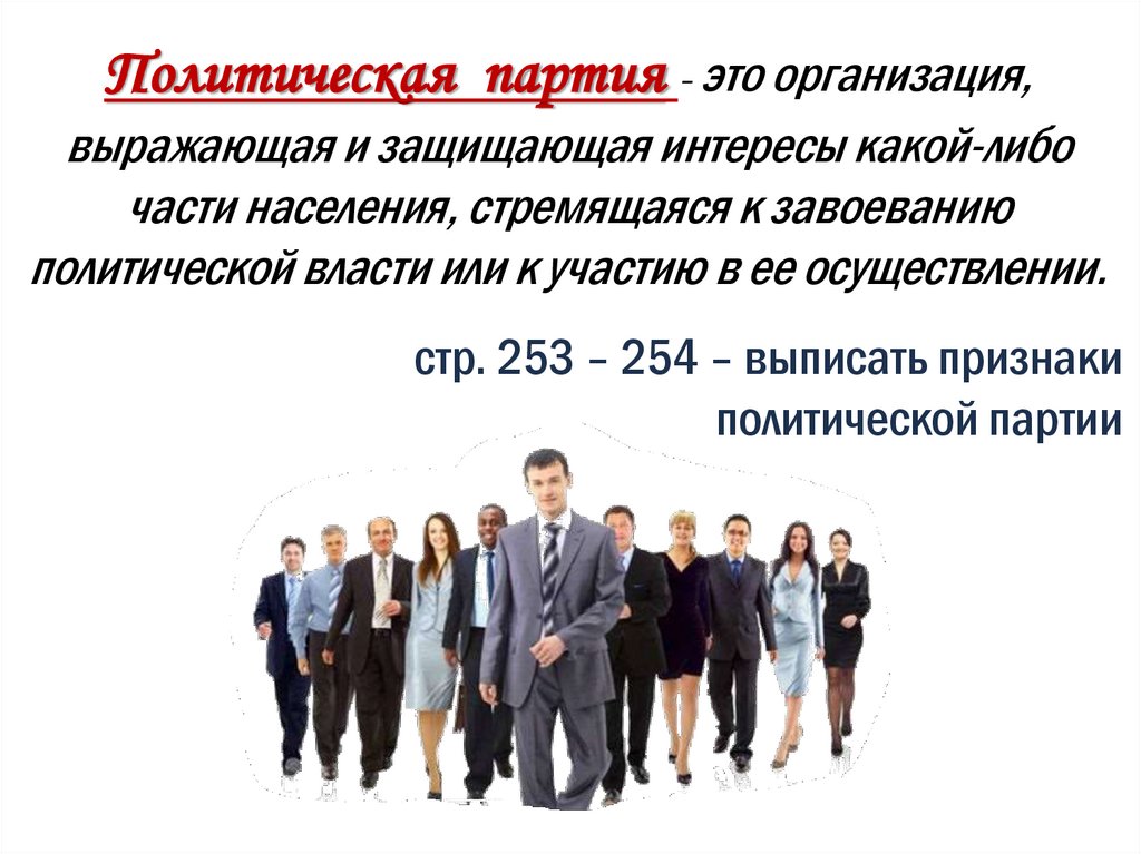 Политическая партия - это организация,выражающая и защищающая интересы какой-либо