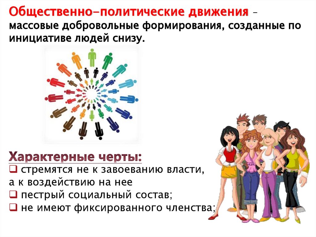 Общественно-политические движения –массовые добровольные формирования, созданные по
