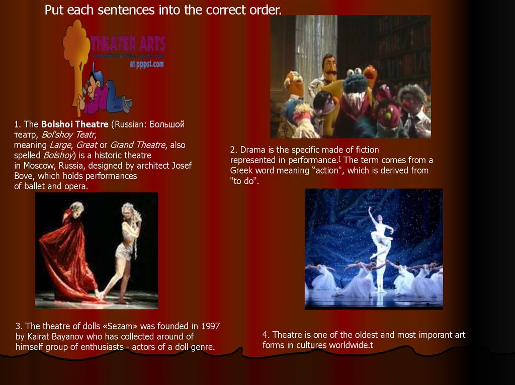Put each sentences into the correct order.1. The Bolshoi Theatre (Russian: Большой