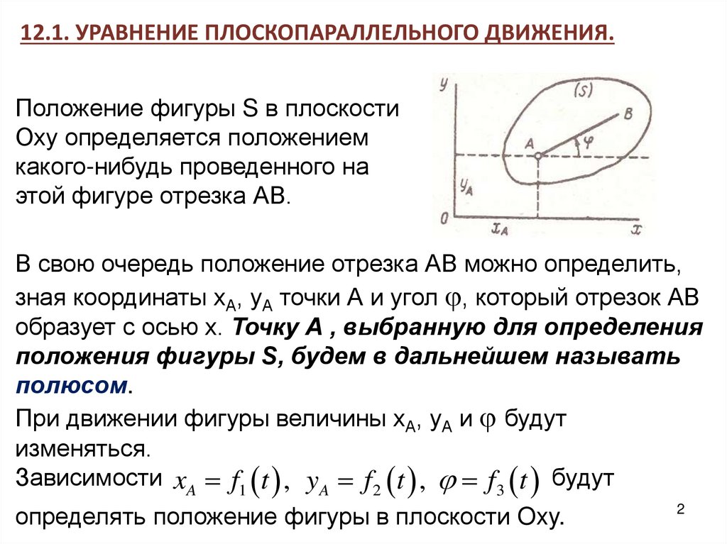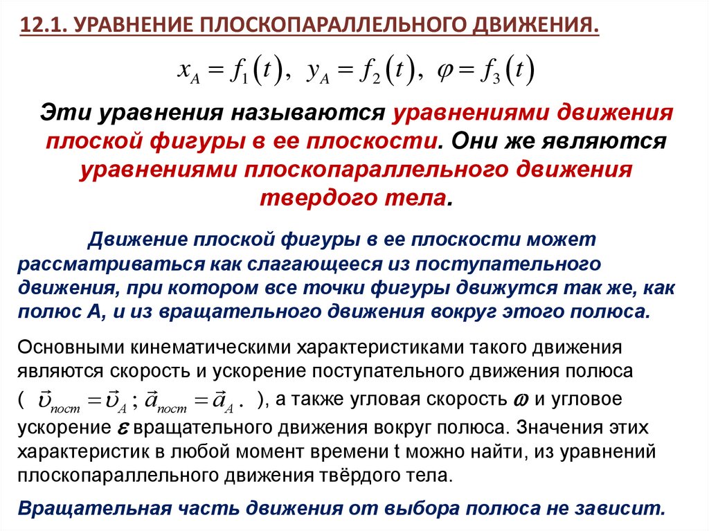 12.1. УРАВНЕНИЕ ПЛОСКОПАРАЛЛЕЛЬНОГО ДВИЖЕНИЯ.