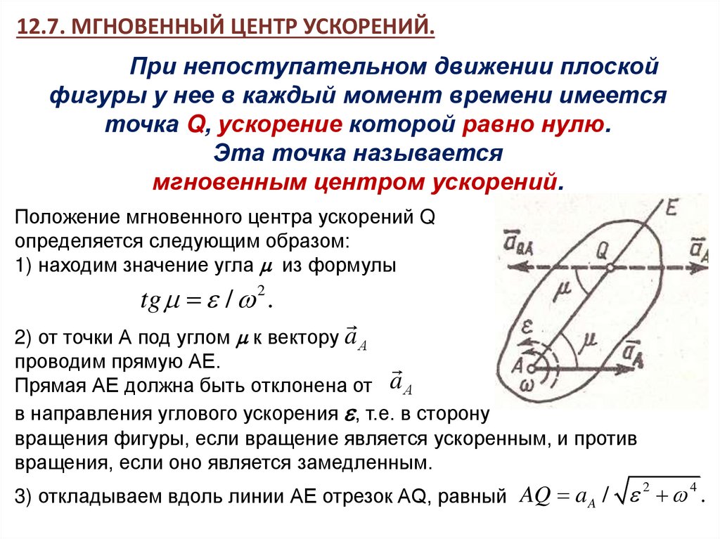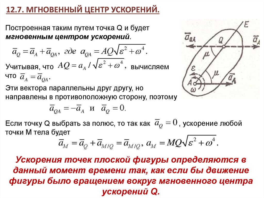 12.7. МГНОВЕННЫЙ ЦЕНТР УСКОРЕНИЙ.Построенная таким путем точка Q и будет