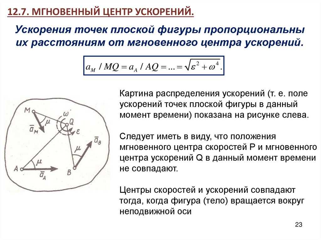 12.7. МГНОВЕННЫЙ ЦЕНТР УСКОРЕНИЙ.При непоступательном движении плоской