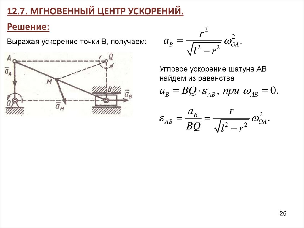 12.7. МГНОВЕННЫЙ ЦЕНТР УСКОРЕНИЙ.Решение:
