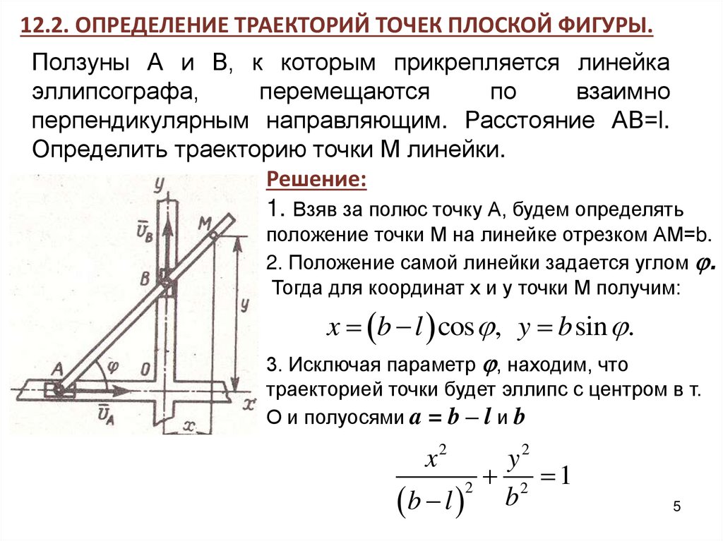 12.2. ОПРЕДЕЛЕНИЕ ТРАЕКТОРИЙ ТОЧЕК ПЛОСКОЙ ФИГУРЫ.Ползуны А и В, к которым прикрепляется линейка