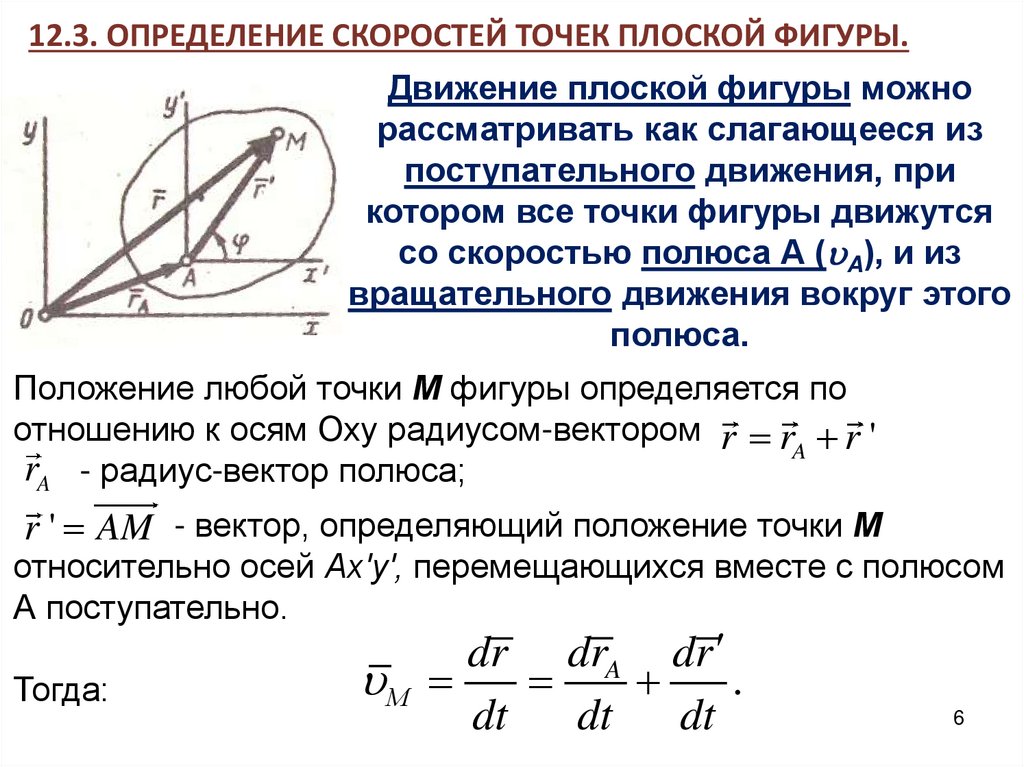 12.3. ОПРЕДЕЛЕНИЕ СКОРОСТЕЙ ТОЧЕК ПЛОСКОЙ ФИГУРЫ.Движение плоской фигуры можно