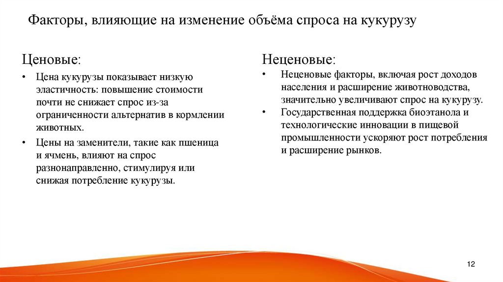 Факторы, влияющие на изменение объёма спроса на кукурузуЦеновые: