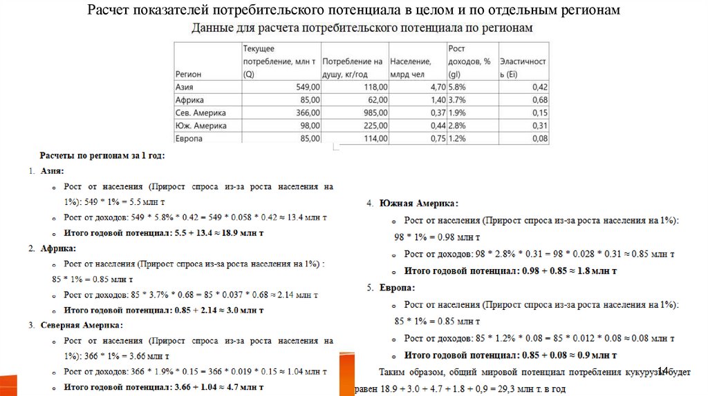 Расчет показателей потребительского потенциала в целом и по отдельным регионам14