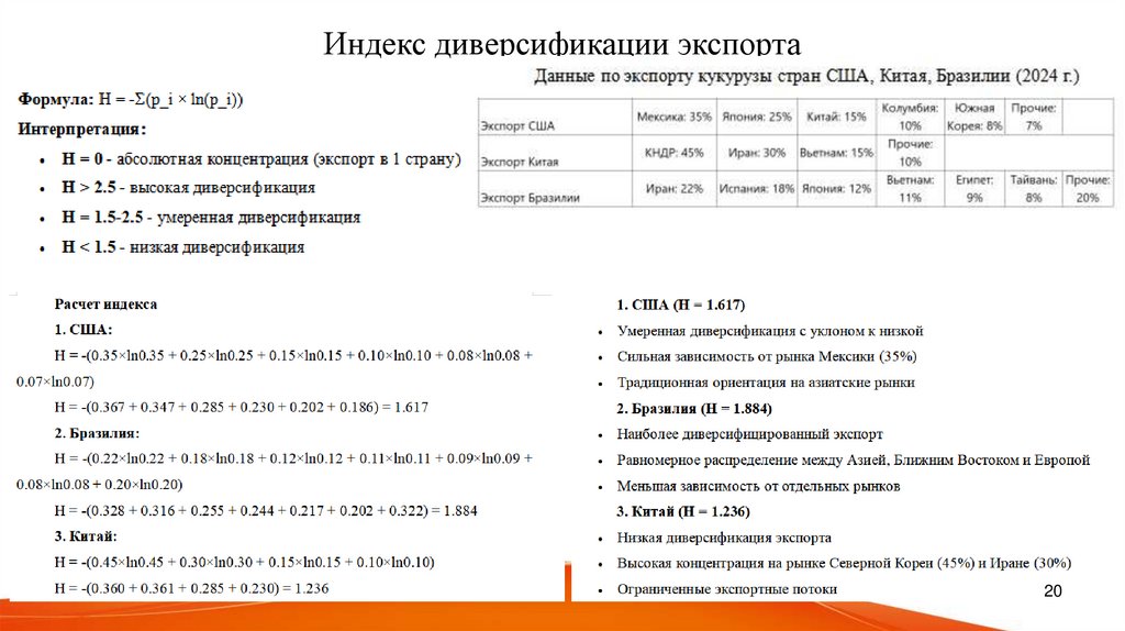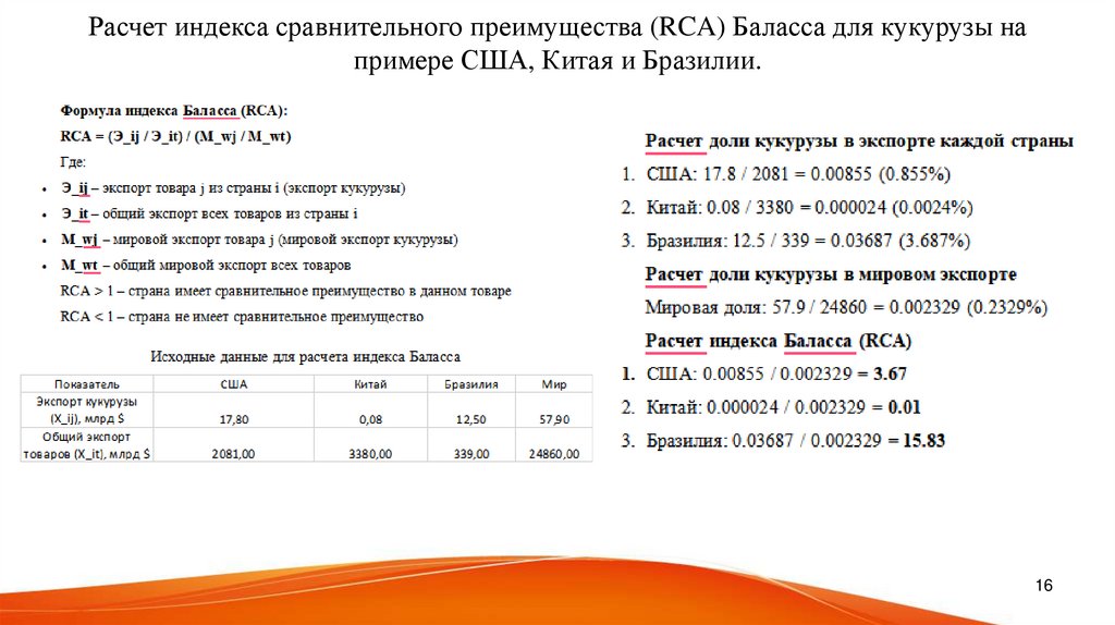 Расчет индекса сравнительного преимущества (RCA) Баласса для кукурузы напримере США, Китая и Бразилии.