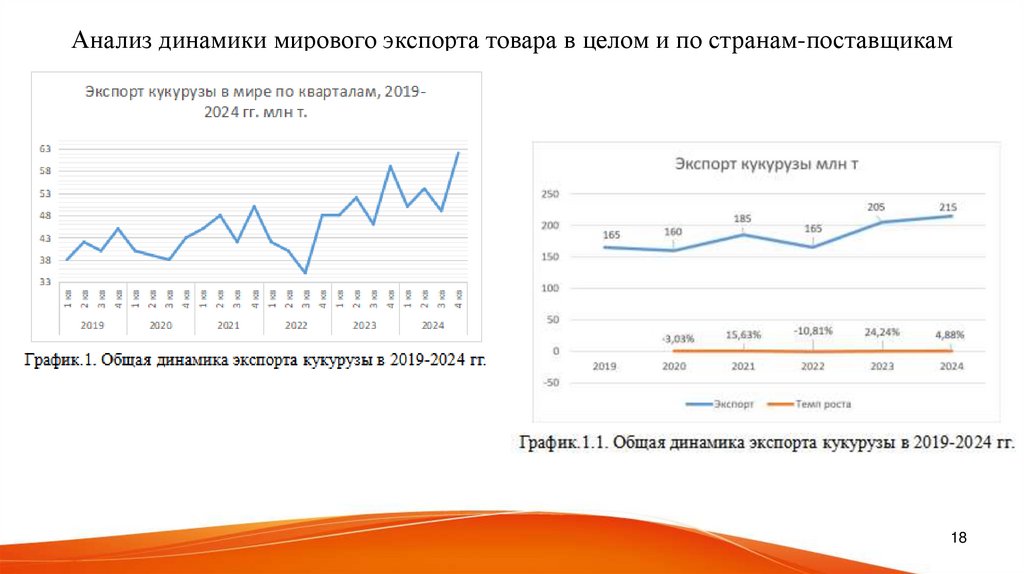 Анализ динамики мирового экспорта товара в целом и по странам-поставщикам18