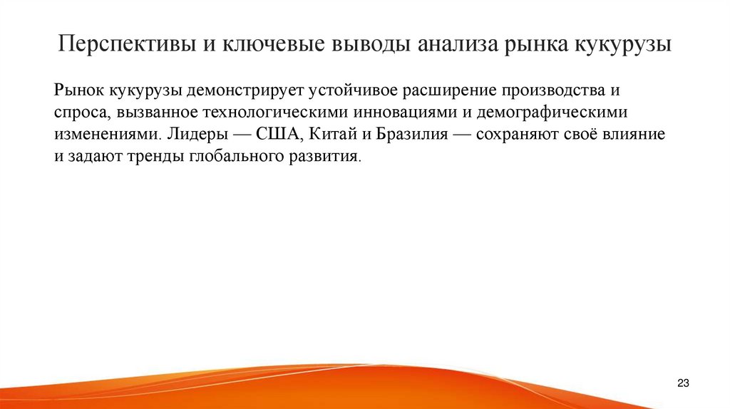 Перспективы и ключевые выводы анализа рынка кукурузыРынок кукурузы демонстрирует устойчивое расширение производства и